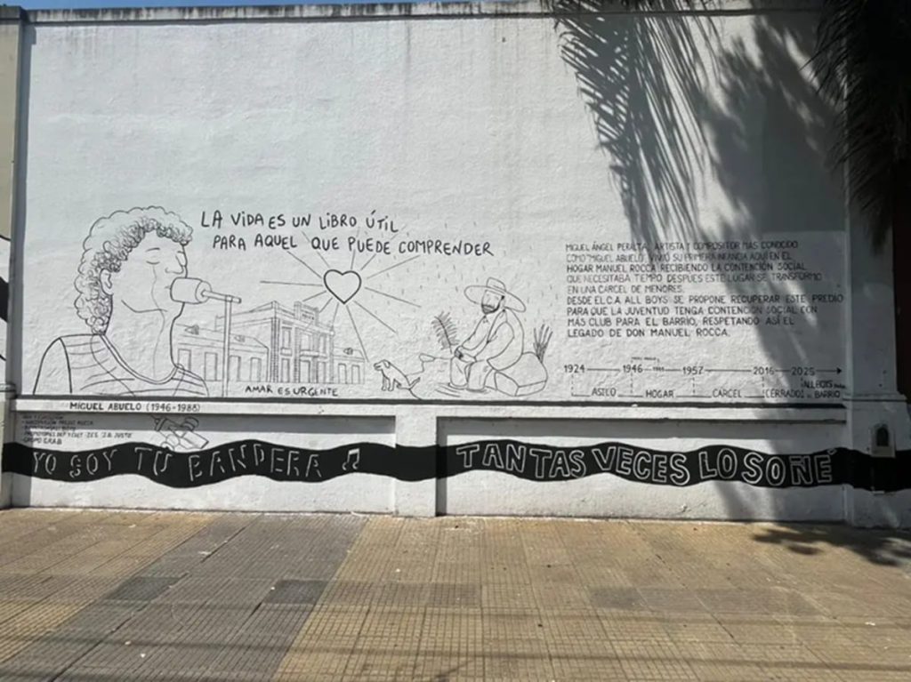 Tras la inauguración de la Esquina Charly García, ahora llega el mural en homenaje a otro músico emblemático del rock nacional: Miguel Abuelo. La obra, a cargo de los alumnos y profesores de la Escuela Secundaria Juan B. Justo e impulsada por el Grupo el Rocca para All Boys (G.R.A.B.), está anclada en un lugar muy especial. Como reporta la revista Rolling Stone, se ubica en el Hogar de Niños que se encuentra a tres cuadras del preventorio de madres tuberculosas Manuel Rocca. ¿Por qué? Porque de niño, Miguel fue internado allí luego de que su madre padeciera tuberculosis.